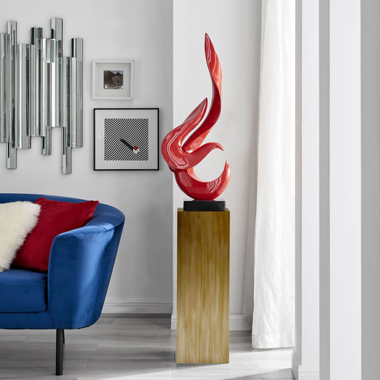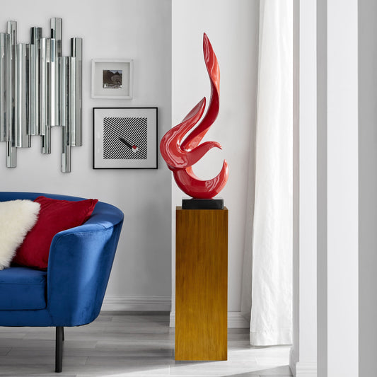 Red Flame Floor Sculpture With Wood Stand, 65" Tall
