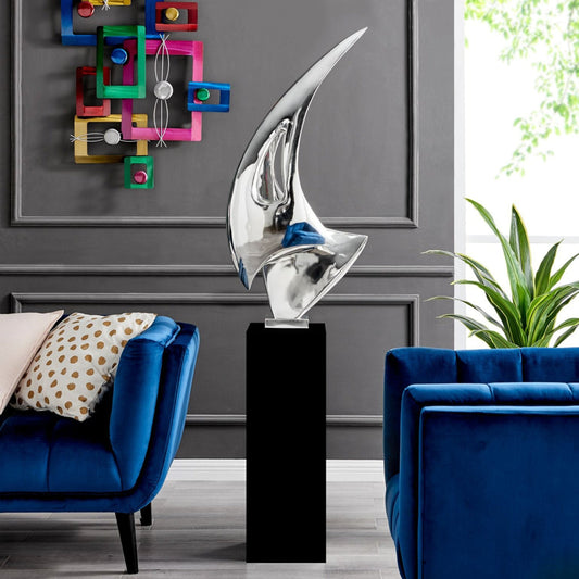 Chrome Sail Floor Sculpture With Black Stand, 70" Tall