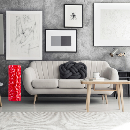 Fluid Abstract 59" Tall Floor Sculpture // Red with Black Stand