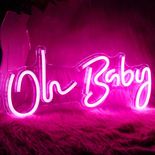 Neon Sign "Oh Baby" - LED Transparent Wall Decor for Wedding, Birthday, and Home Aesthetics