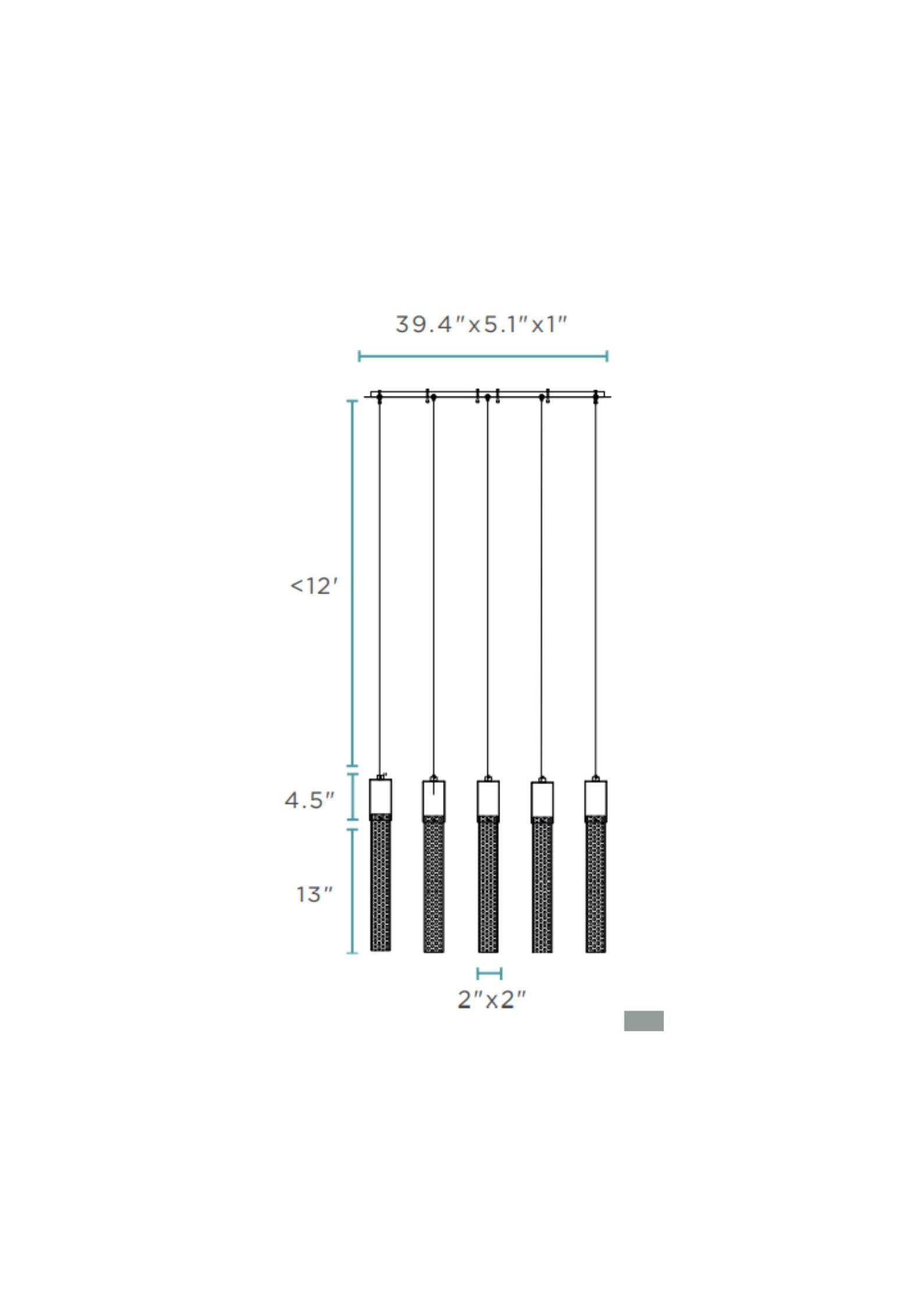 - Single Pendant Dimensions: 2" circumference x 17" length